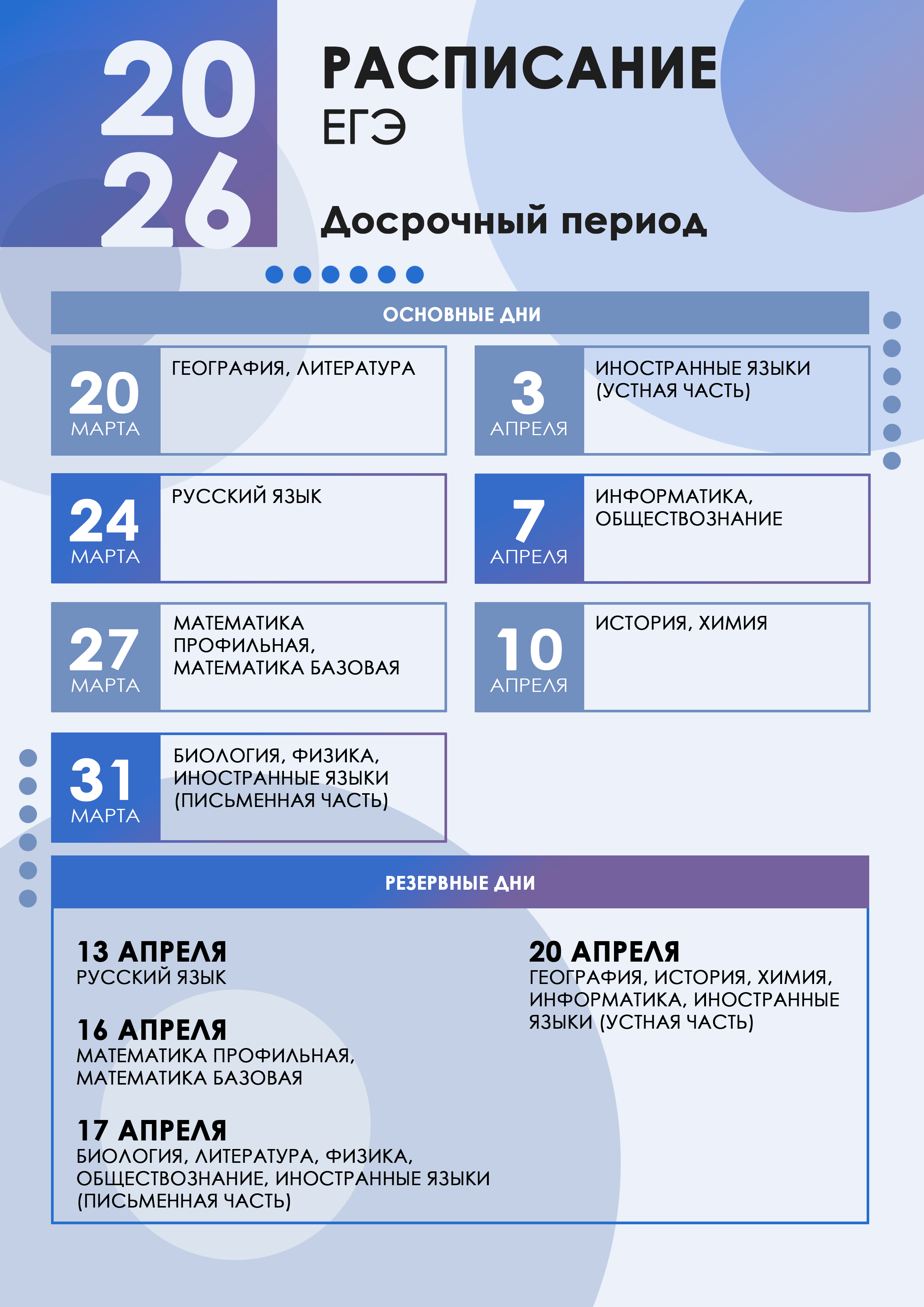 Сроки проведения ЕГЭ в 2026 году