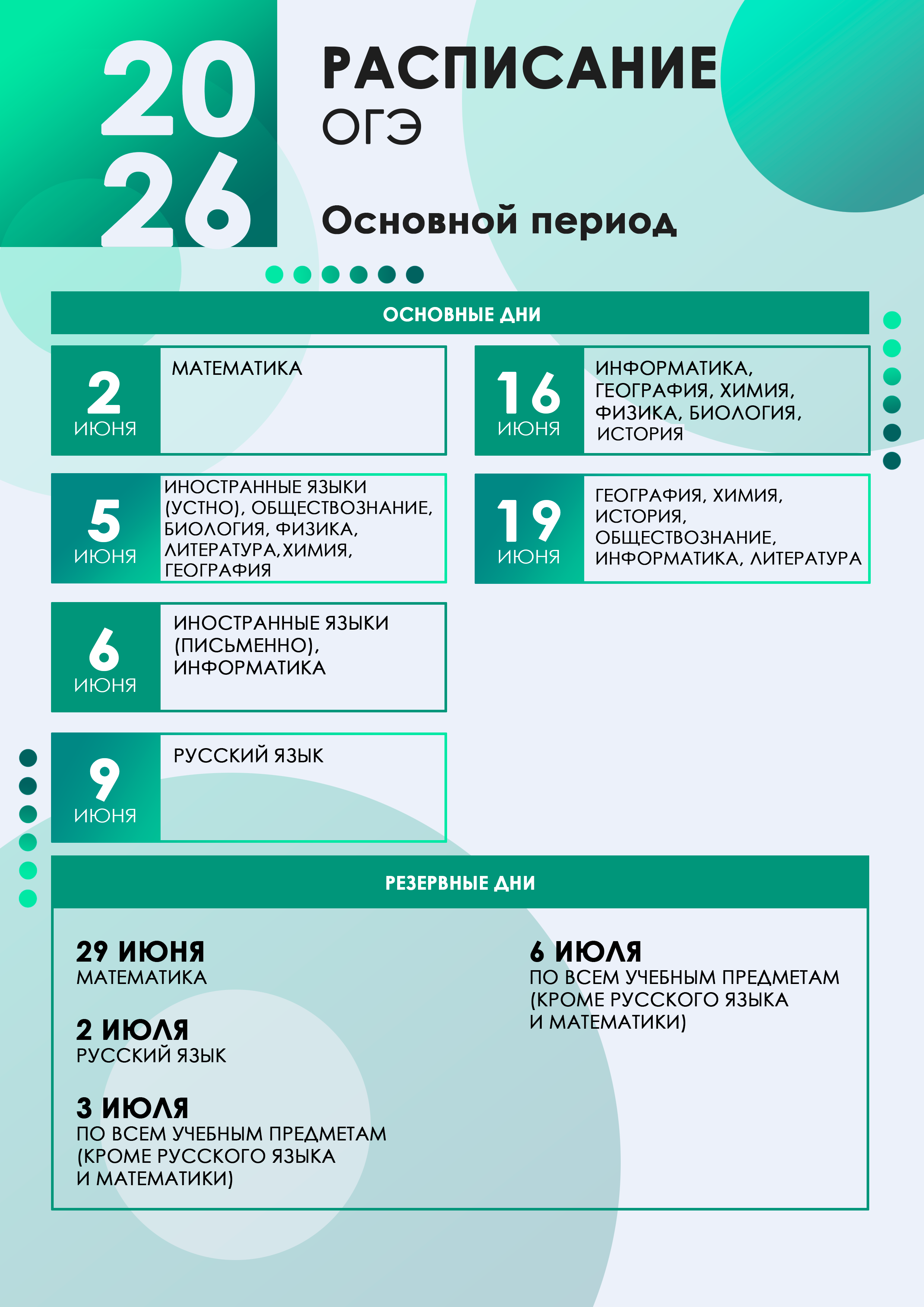 Сроки проведения ОГЭ и ГВЭ в 2026 году