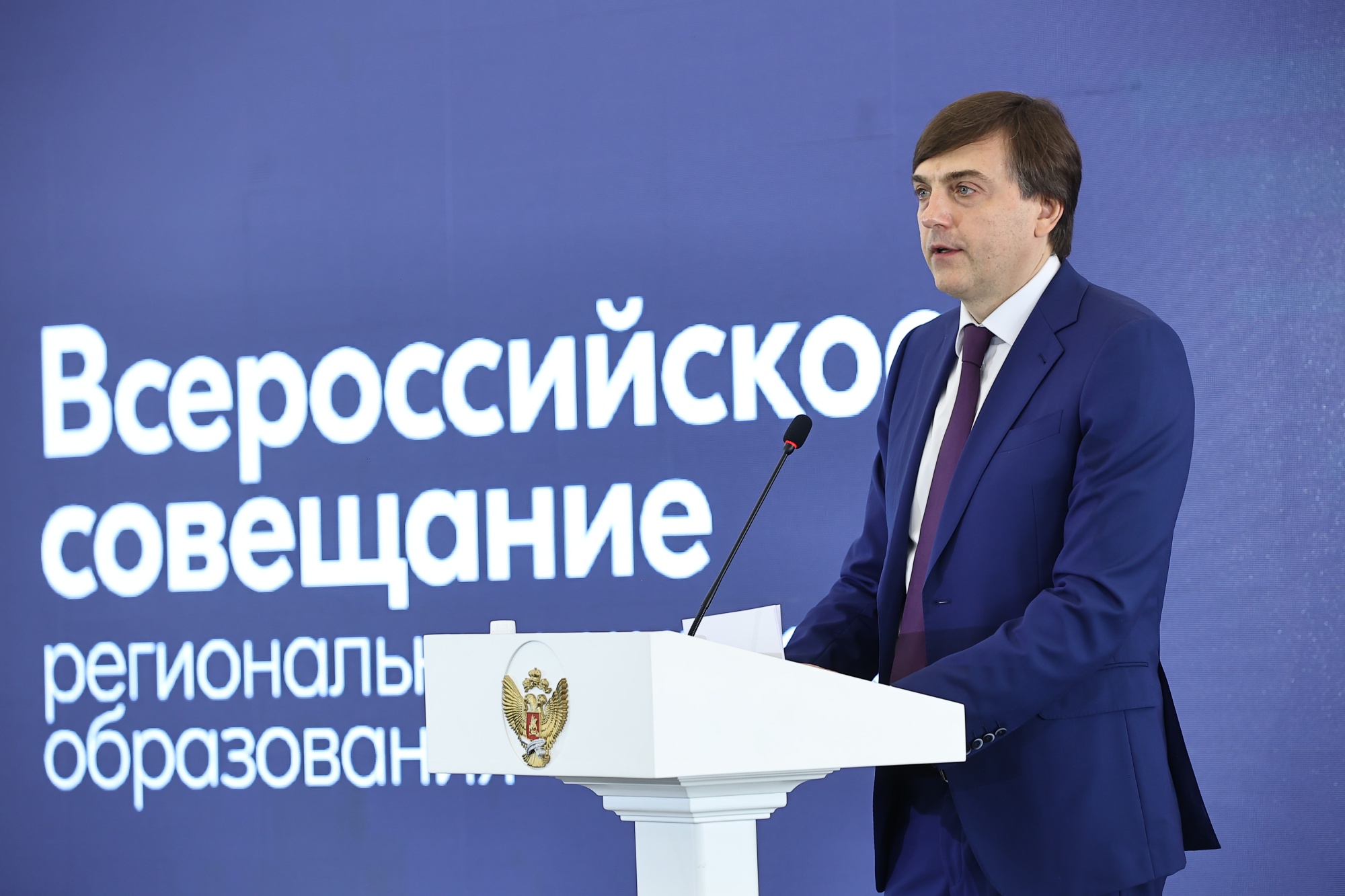 «Сегодня мы проводим Всероссийское совещание региональных министров образования, в нем принимают участие представители всех 89 регионов нашей страны. Перед нами стоят новые важные задачи – просим уделить им самое серьезное внимание. Прежде всего, хочу поблагодарить вас, уважаемые коллеги, за вашу работу. Завтра мы проводим Всероссийский педагогический съезд. Первый такой съезд состоялся в 1925 году, и спустя 100 лет мы возрождаем эту традицию. На съезде мы обсудим Стратегию развития образования», – отметил Министр просвещения РФ Сергей Кравцов.